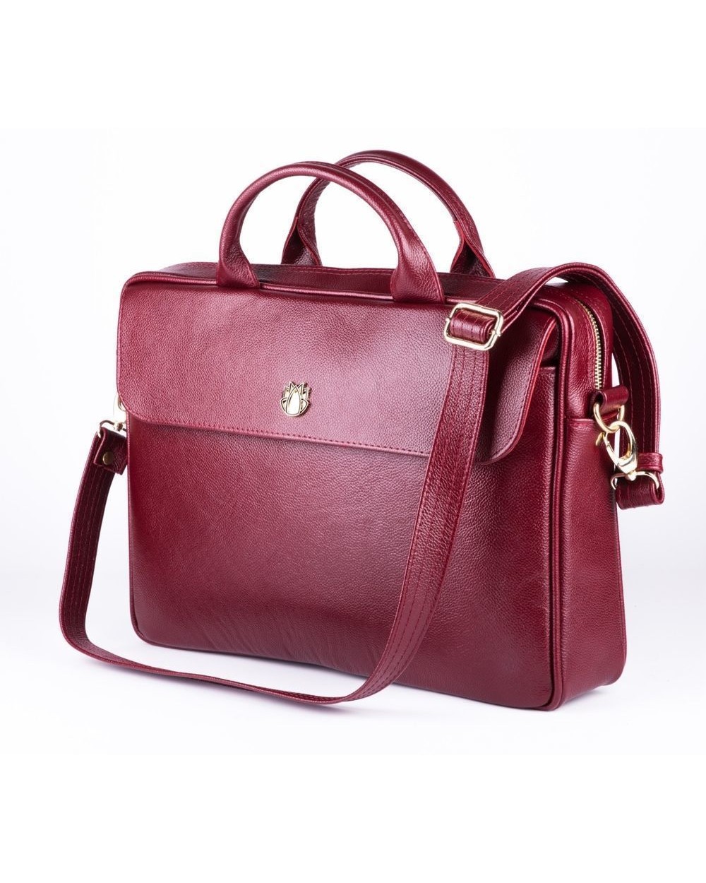 Damska torba na laptopa ze skóry naturalnej burgund | Torebki damskie skórzane