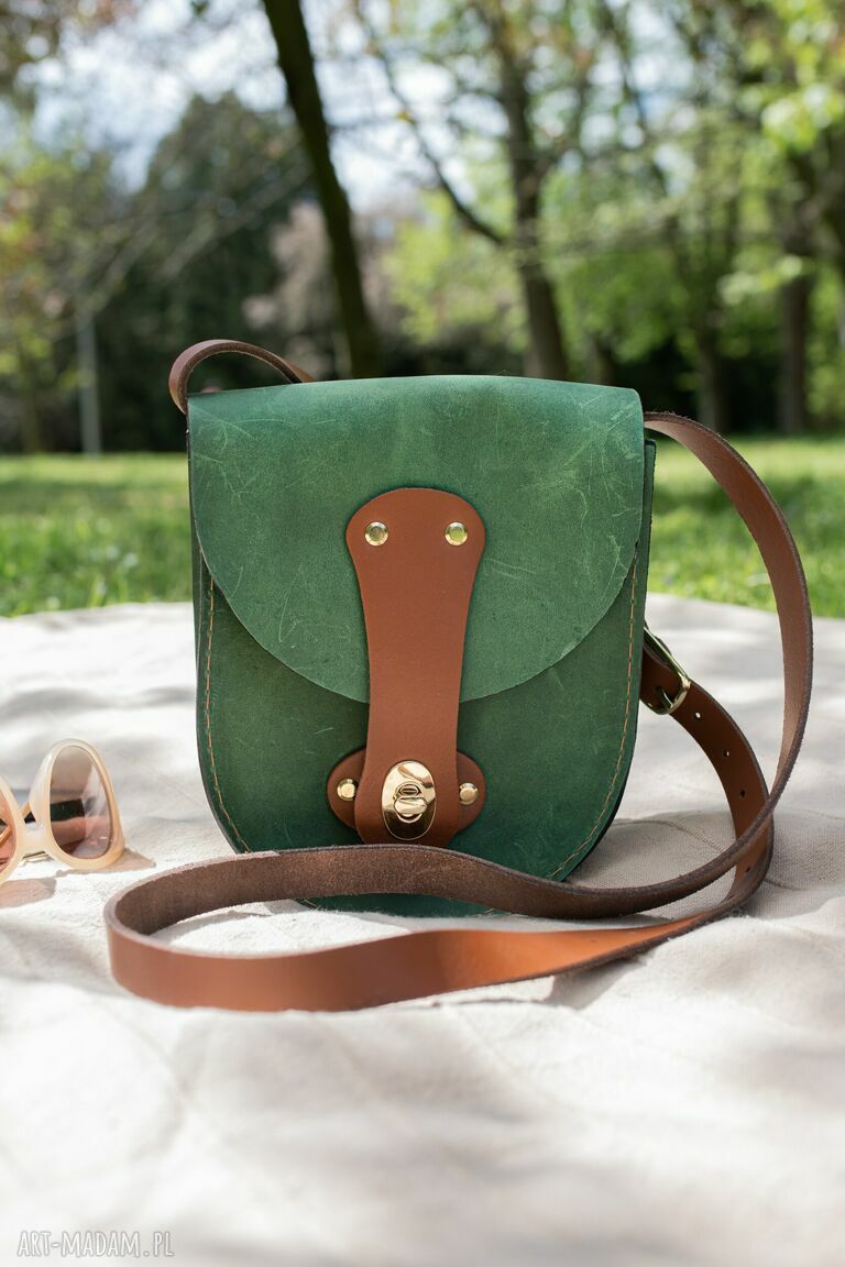 mała torebka damska zielona z długim paskiem, skórzana mini torebka