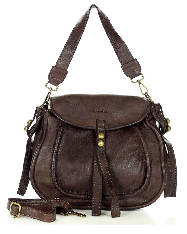 Marco Mazzini Torebka classic saddle bag ze skóry naturalnej na ramie ciemny brąz caffe brąz caffe | sklep Verostilo