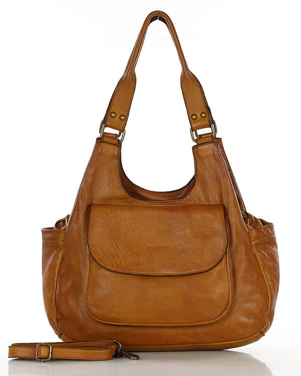 Skórzana torebka damska na ramię brązowa camel MARCO MAZZINI v154a