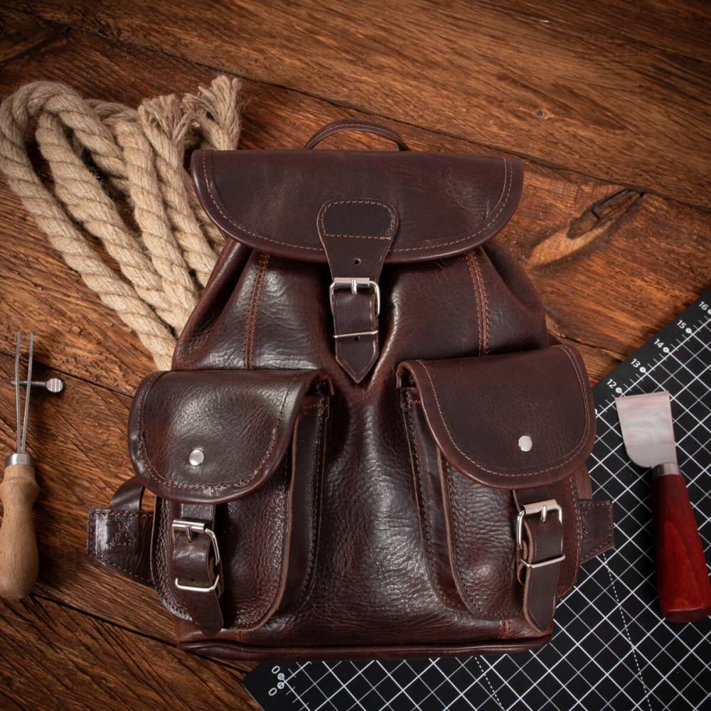 Brązowy Mały Plecak Skórzany Damski z Kieszonkami Belveder BR21