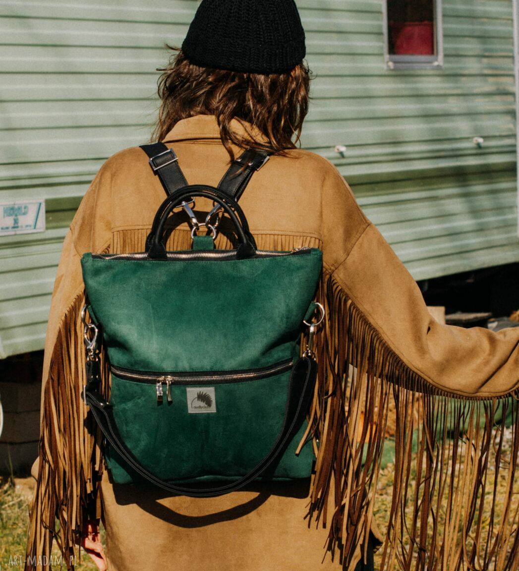 Plecak / torba 2 w 1 z nubuku tapicerskiego butelkowa zieleń
