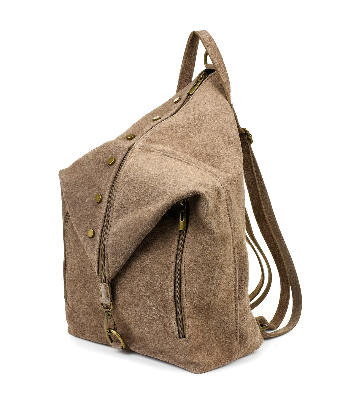 Taupe Włoski Stylowy Plecak Damski Skórzany Zamsz A4 Kolory brązowy, beżowy