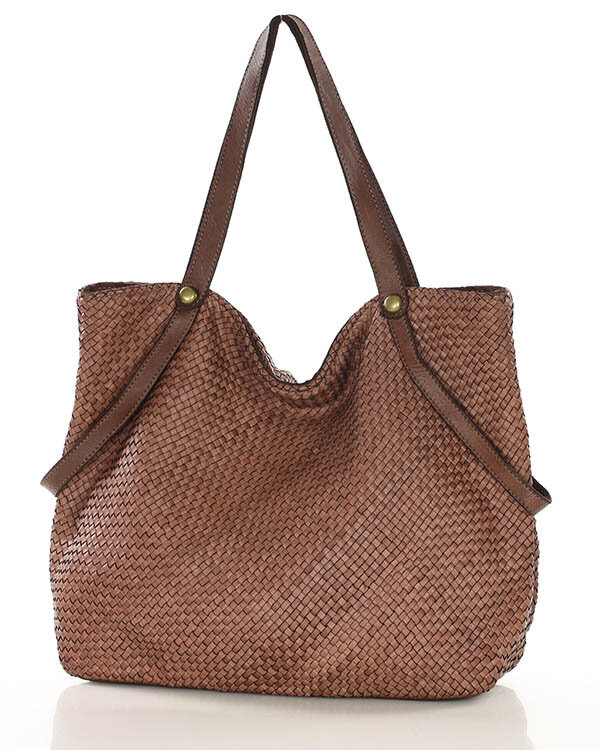 Duża torebka pleciona shopperka ze skóry MARCO MAZZINI brązowa brąz | sklep Verostilo