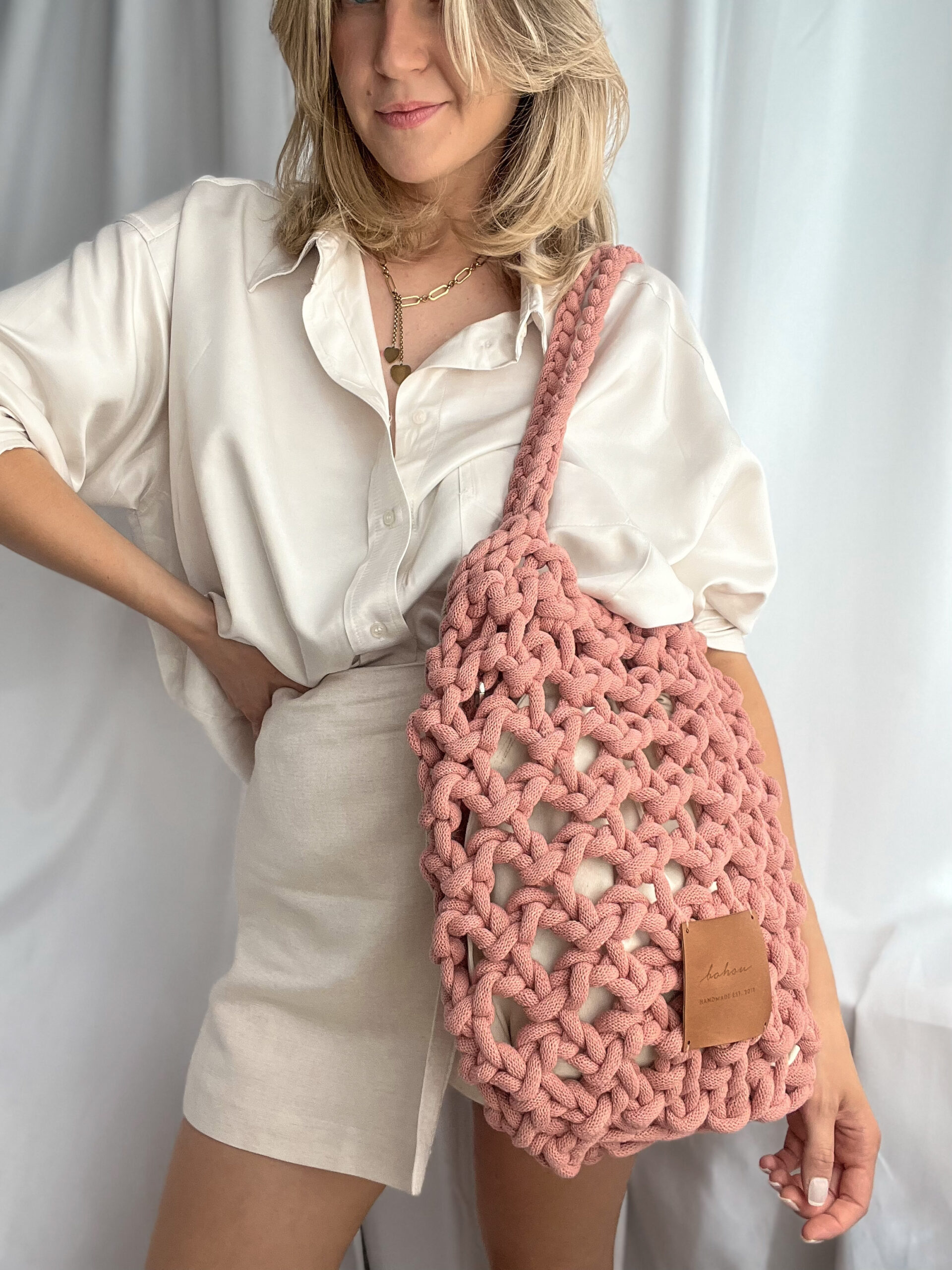 Ręcznie pleciona torebka SUMMER BAG różowe złoto –