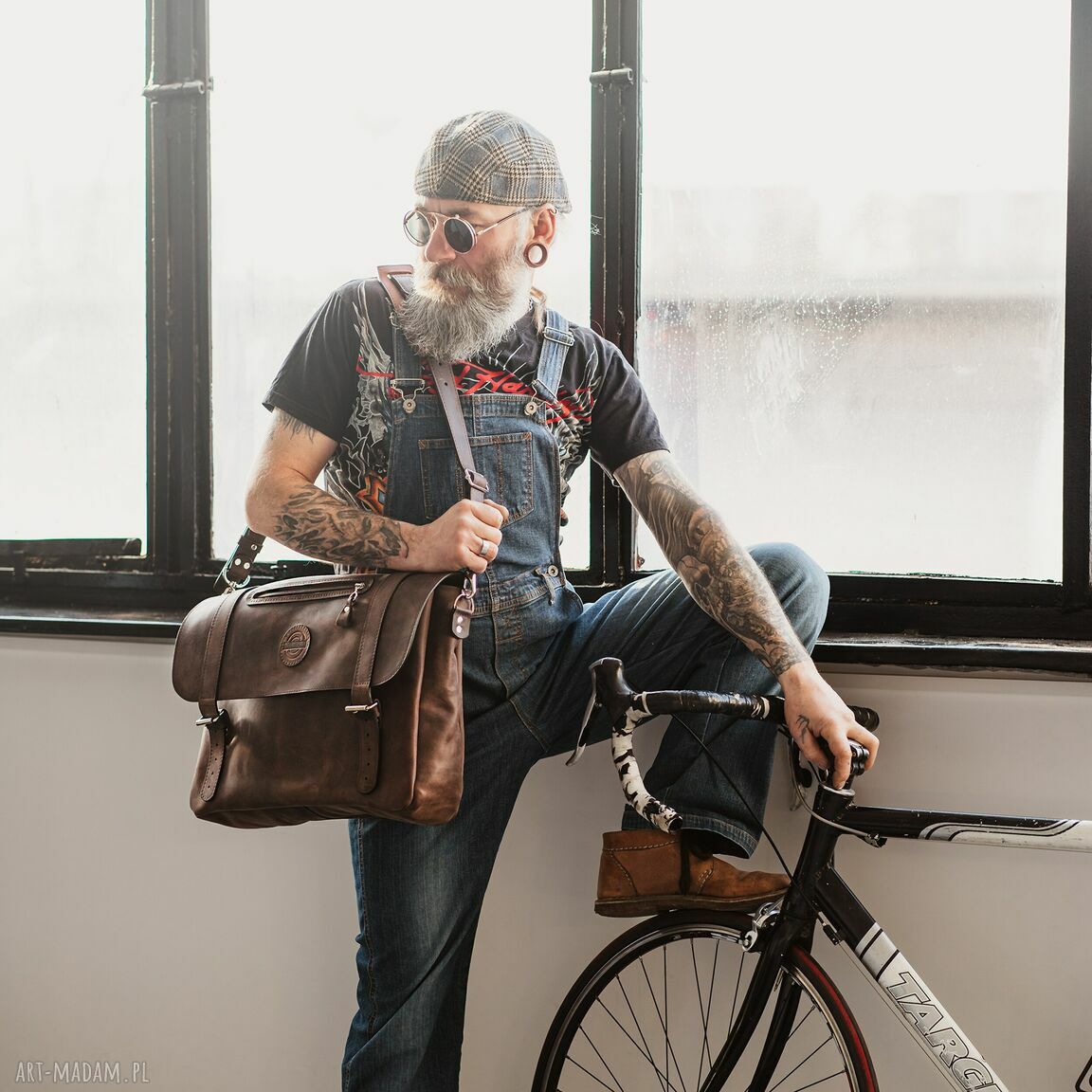 Skórzana torba na laptopa rozmiar L wykonana ręcznie w klasycznym stylu z paskiem na ramię