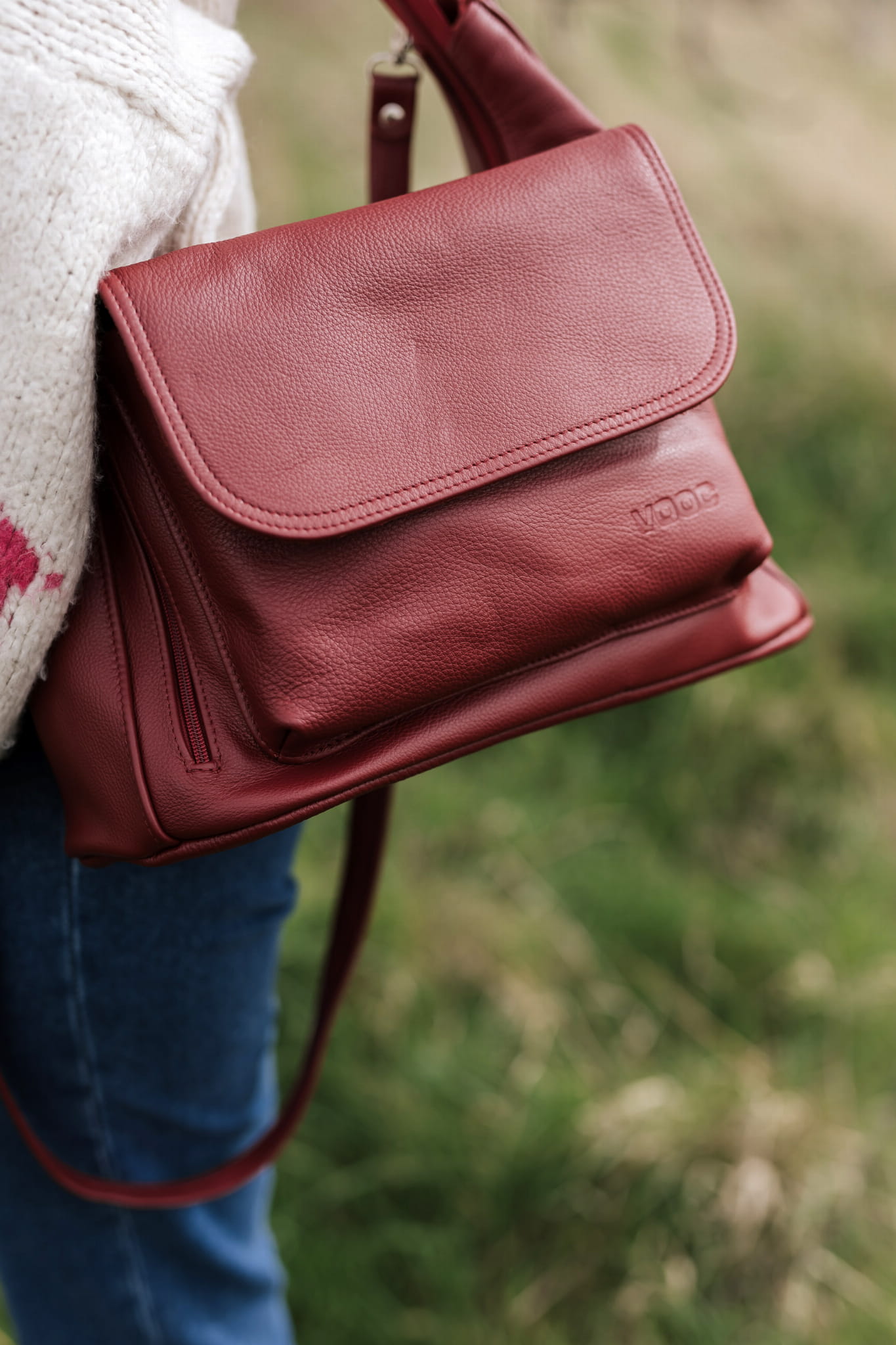 Bordowa skórzana torebka na ramię EP20