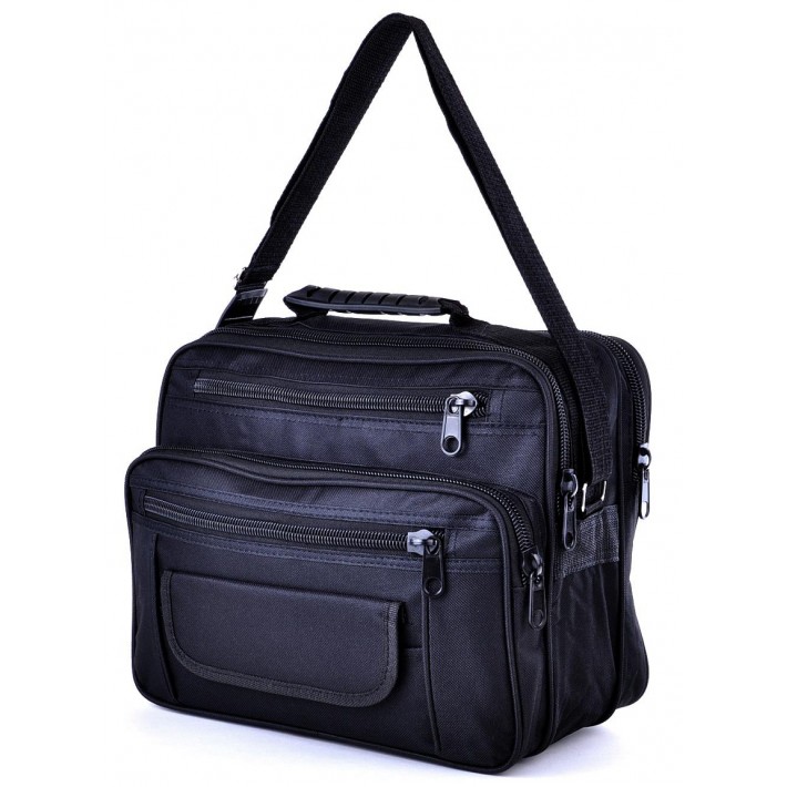 DUŻA CZARNA POZIOMA TORBA MĘSKA Z KABURĄ NA RAMIĘ I JEDZENIE DO PRACY KODURA / G1 11
