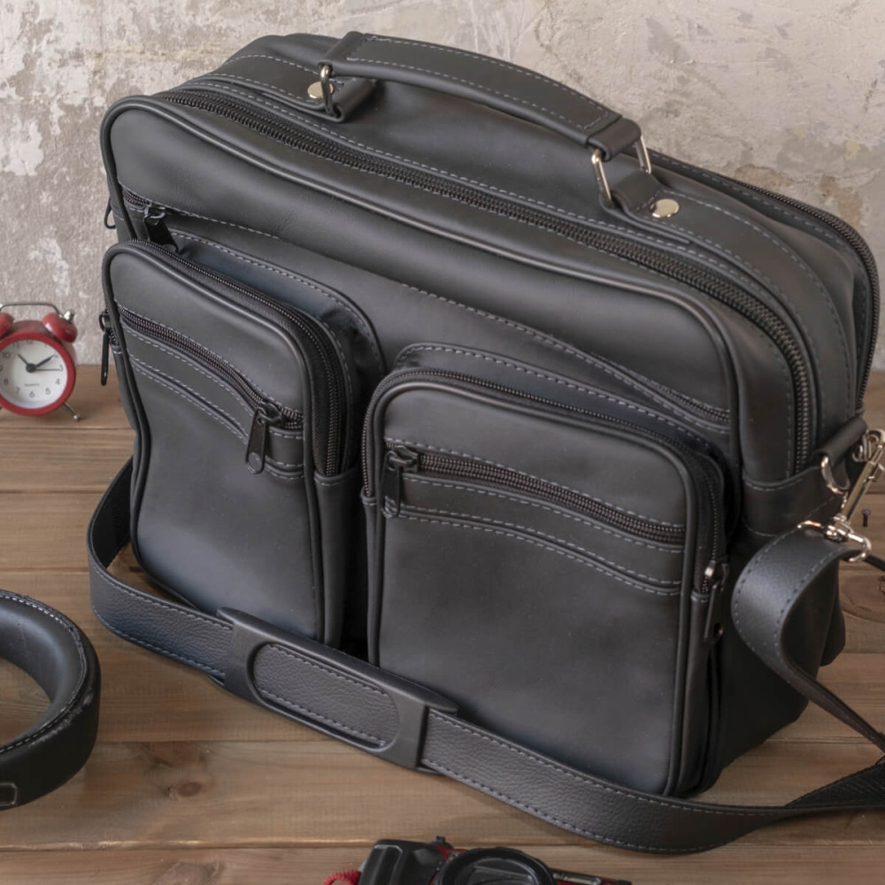 Duża Czarna Torba do Pracy Męska Skóra Naturalna z Kieszeniami Nord13