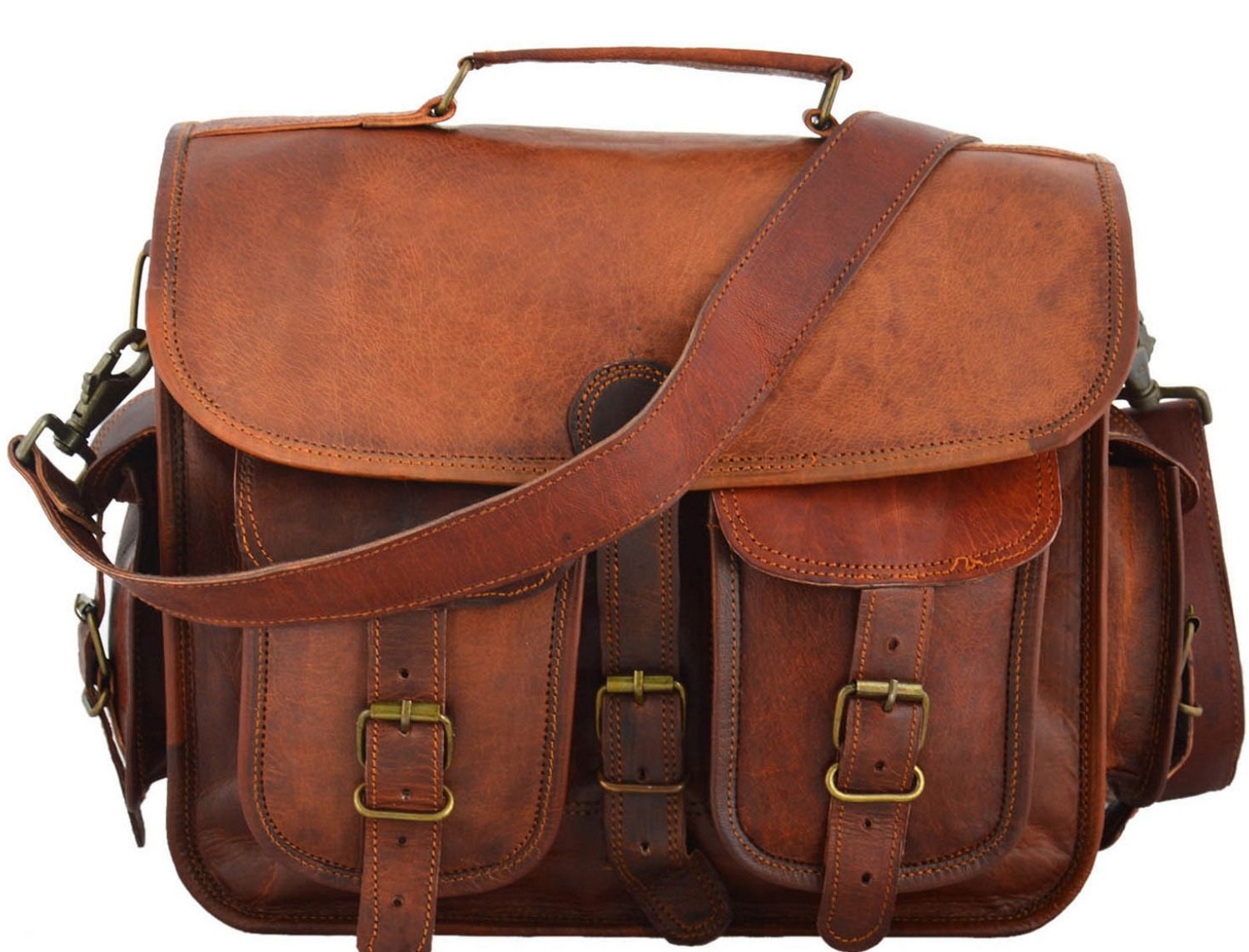 ☆ LH004 Skórzana torba listonoszka, męska torba na ramię z grubej skóry w stylu vintage.
