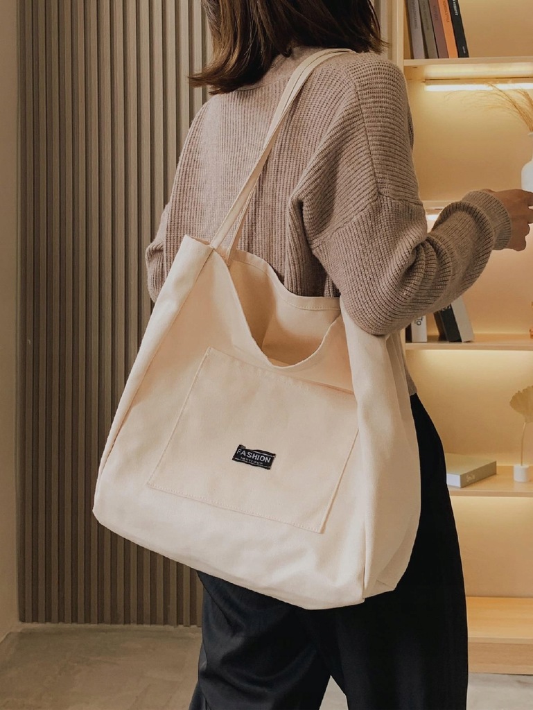 D17G035 TORBA MATERIAŁOWA KREMOWA NA RAMIĘ SHEIN 13133267411 oficjalne archiwum Allegro