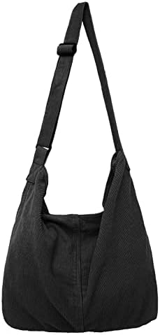 X SIM FITNESSX Unisex Cord torba na ramię duża damska torba na zakupy modna torba materiałowa na co dzień/do biura/szkoły/podróży, czarny, Retro : …