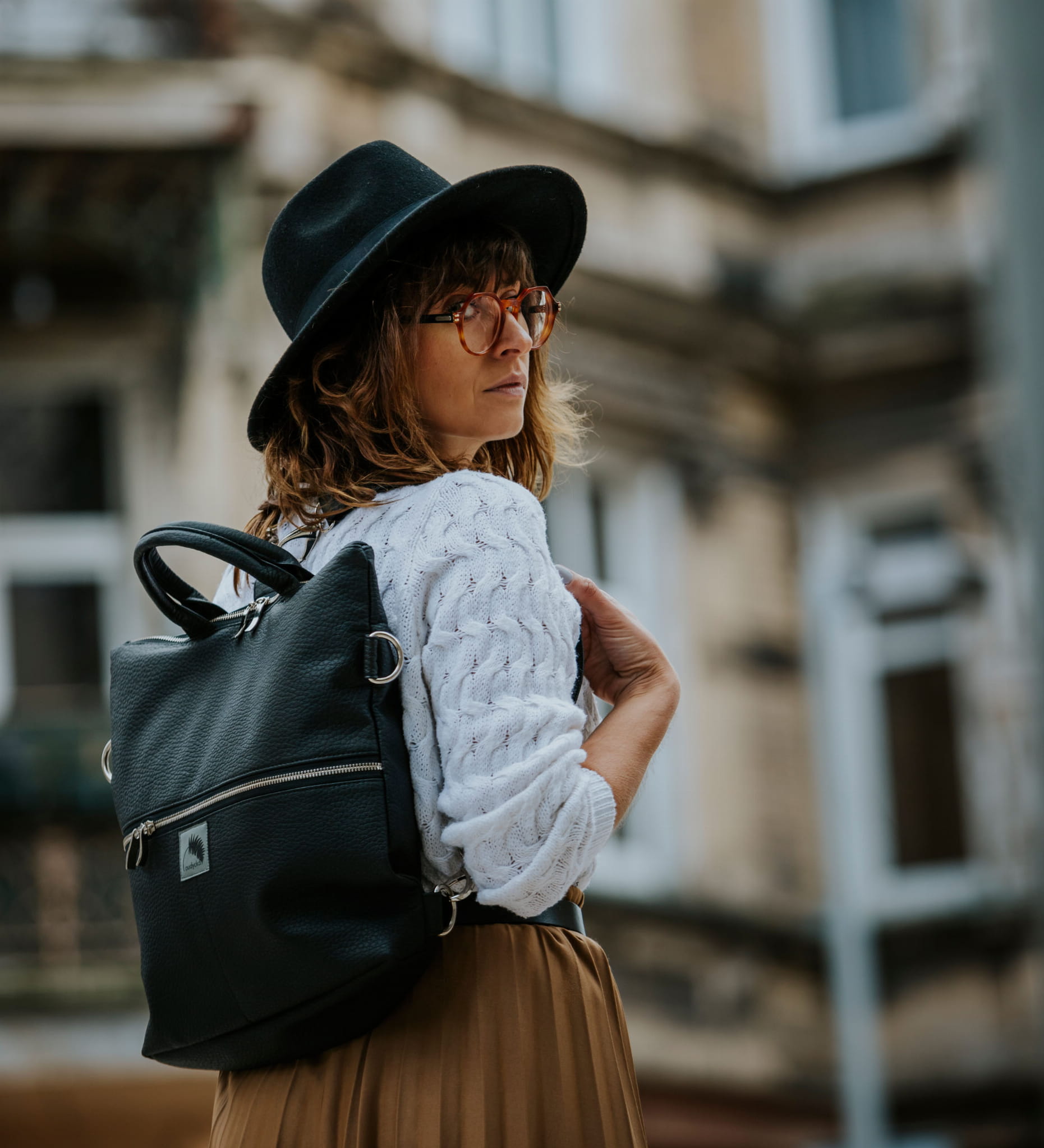 Czarny plecak / torba 2 w 1 ze skóry ekologicznej Karolina Audycka Pracownia Torebek