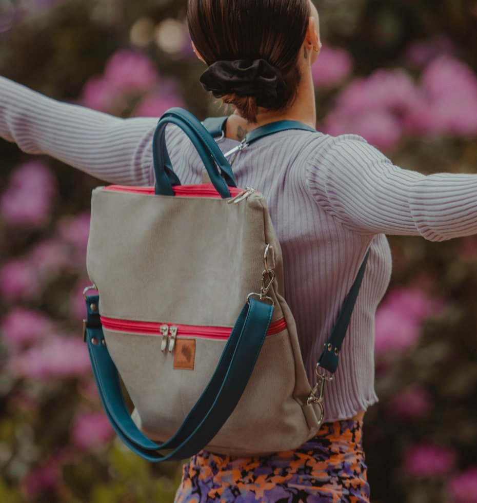 Kolorowy plecak / torba 2 w 1 z nubuku tapicerskiego