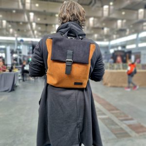 Plecak / torba 2 w 1 z nubuku tapicerskiego khaki brązowe paski Karolina Audycka Pracownia Torebek