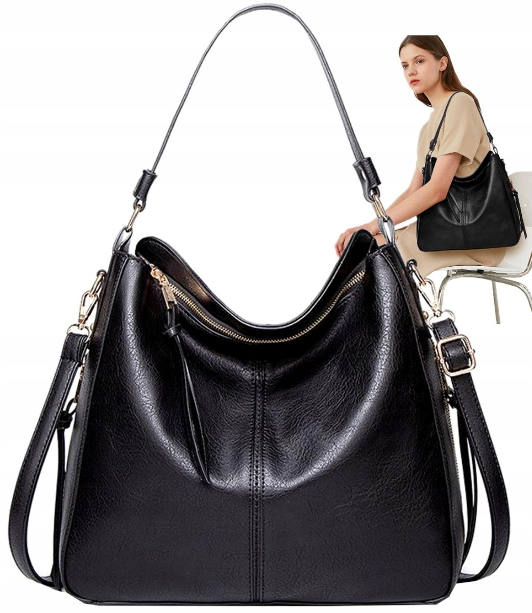 Torebka Skórzana Damska Czarna Miejska Pojemna A4 Edibazzar | Moda Sklep