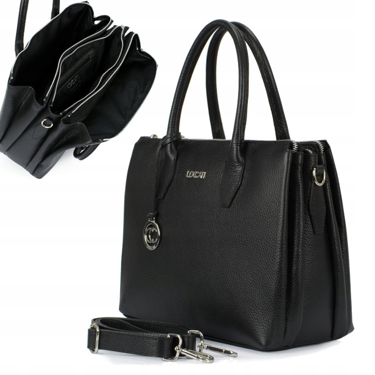 Czarna torebka a4 skórzana Duże torebki do pracy z naturalnej skóry LOCCATI