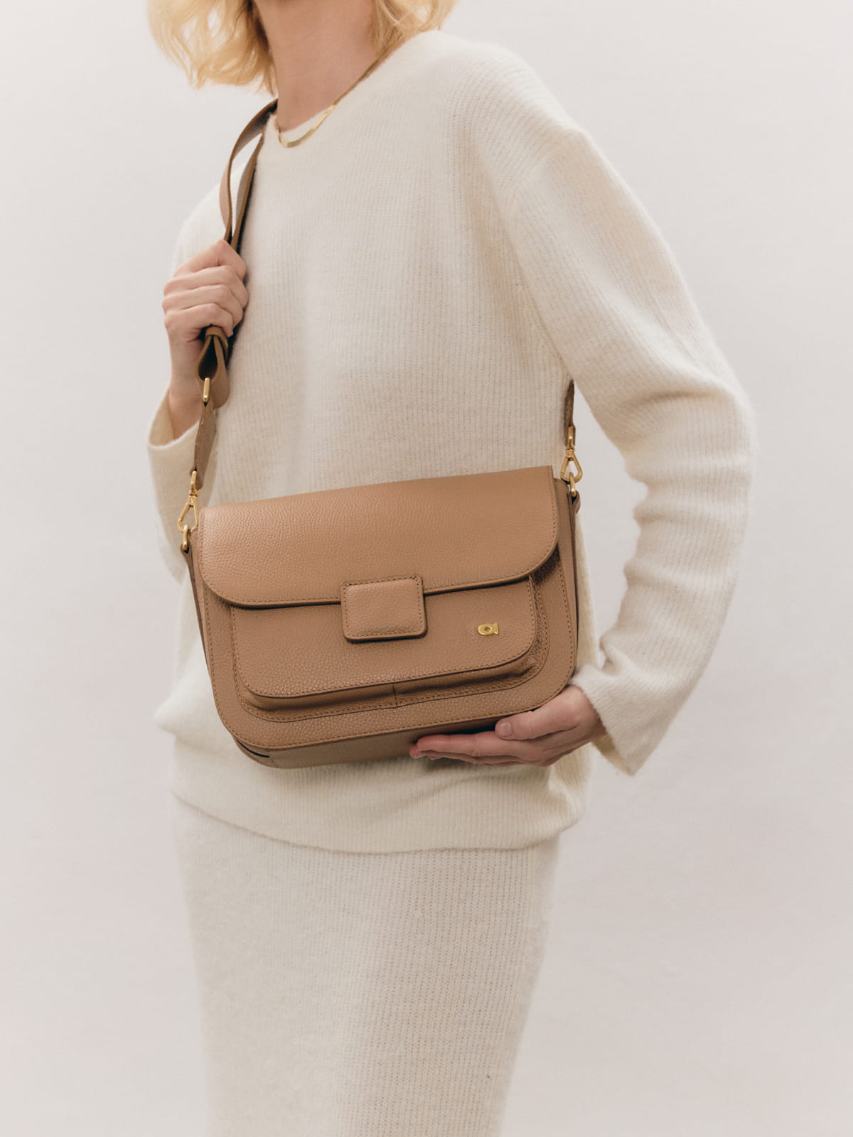 MADELINE beżowa groszek latte skórzana torebka damska duża