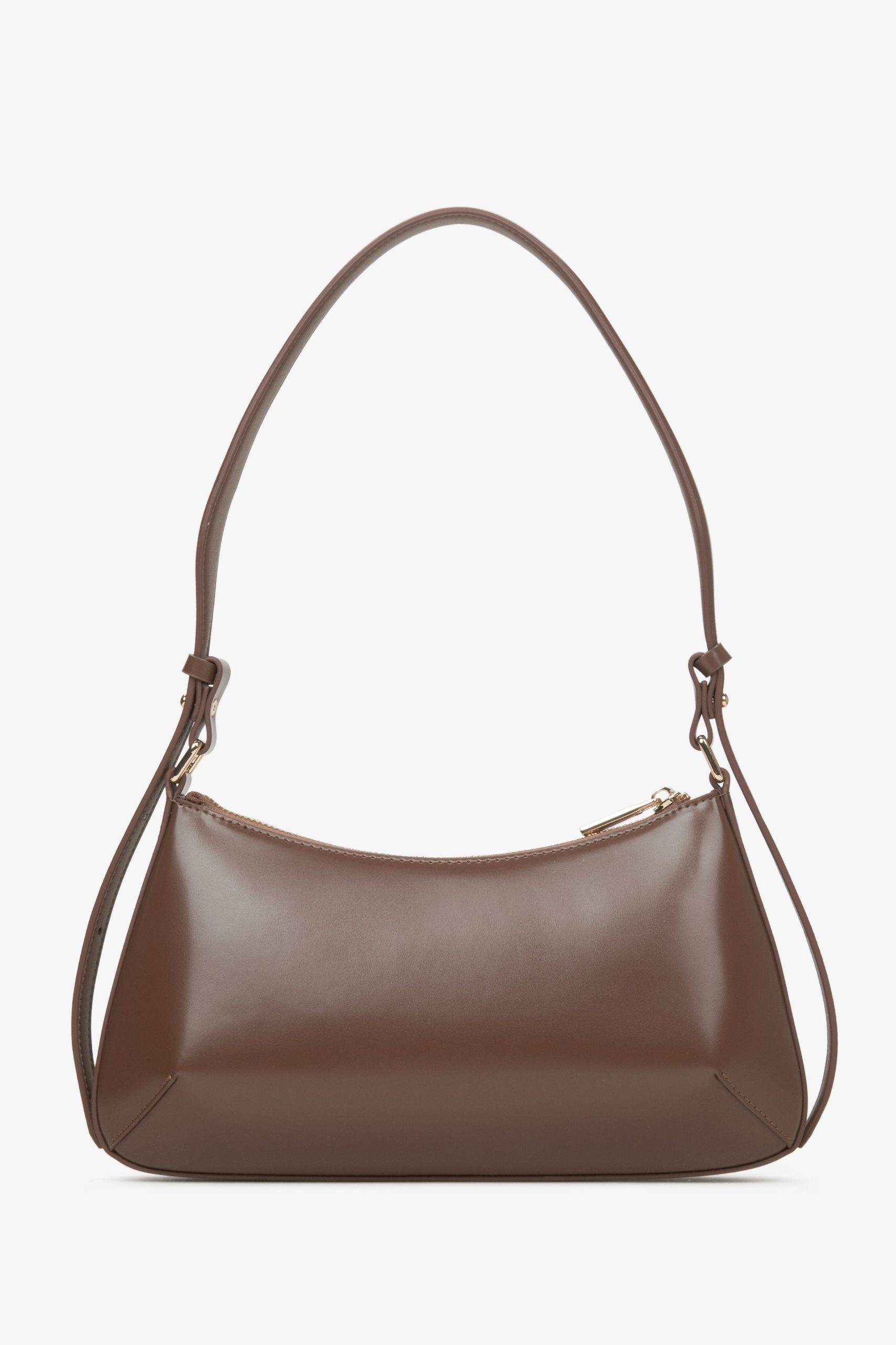 Brązowa skórzana torebka damska typu bagietka ⠂Sklep Estro –
