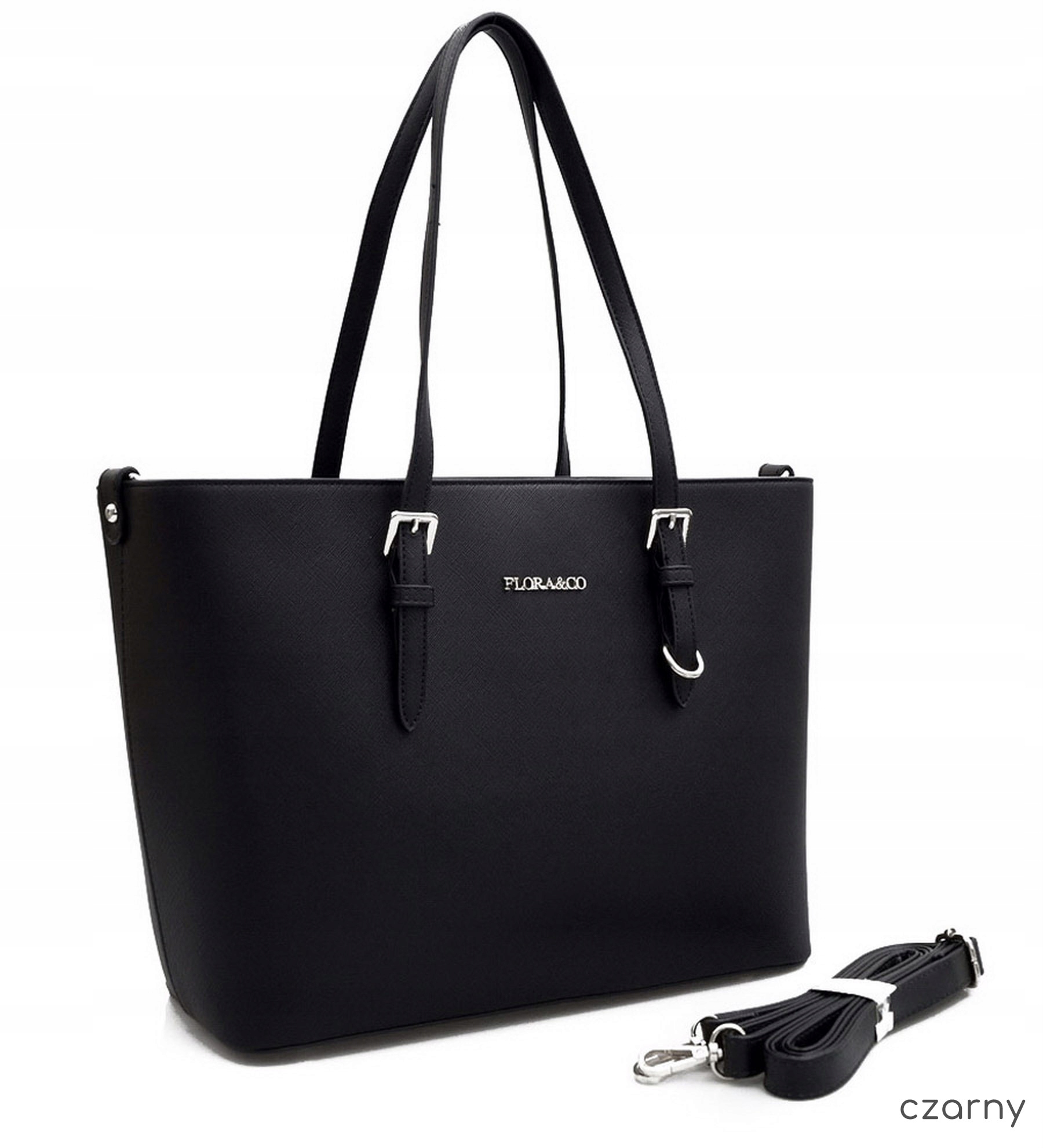 FLORA&CO usztywniana torebka damska duża klasyczna CZARNA shopperka