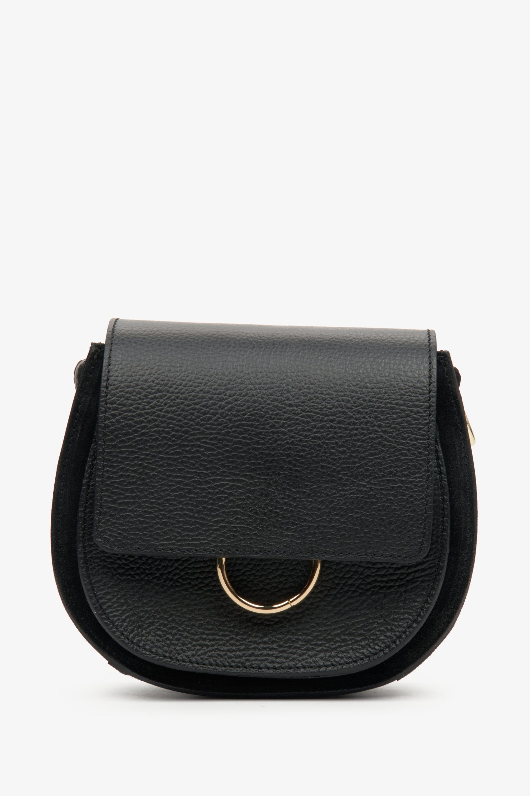 Mała czarna torebka damska w kształcie podkowy ze skóry naturalnej Estro ER00112977