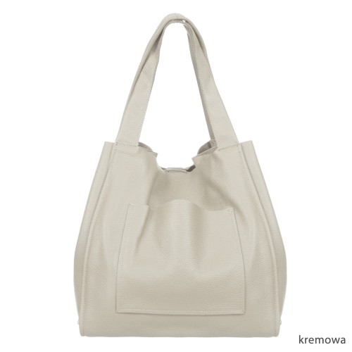 VERA PELLE torebka damska skórzana shopper z saszetką na ramię V497 kremowa