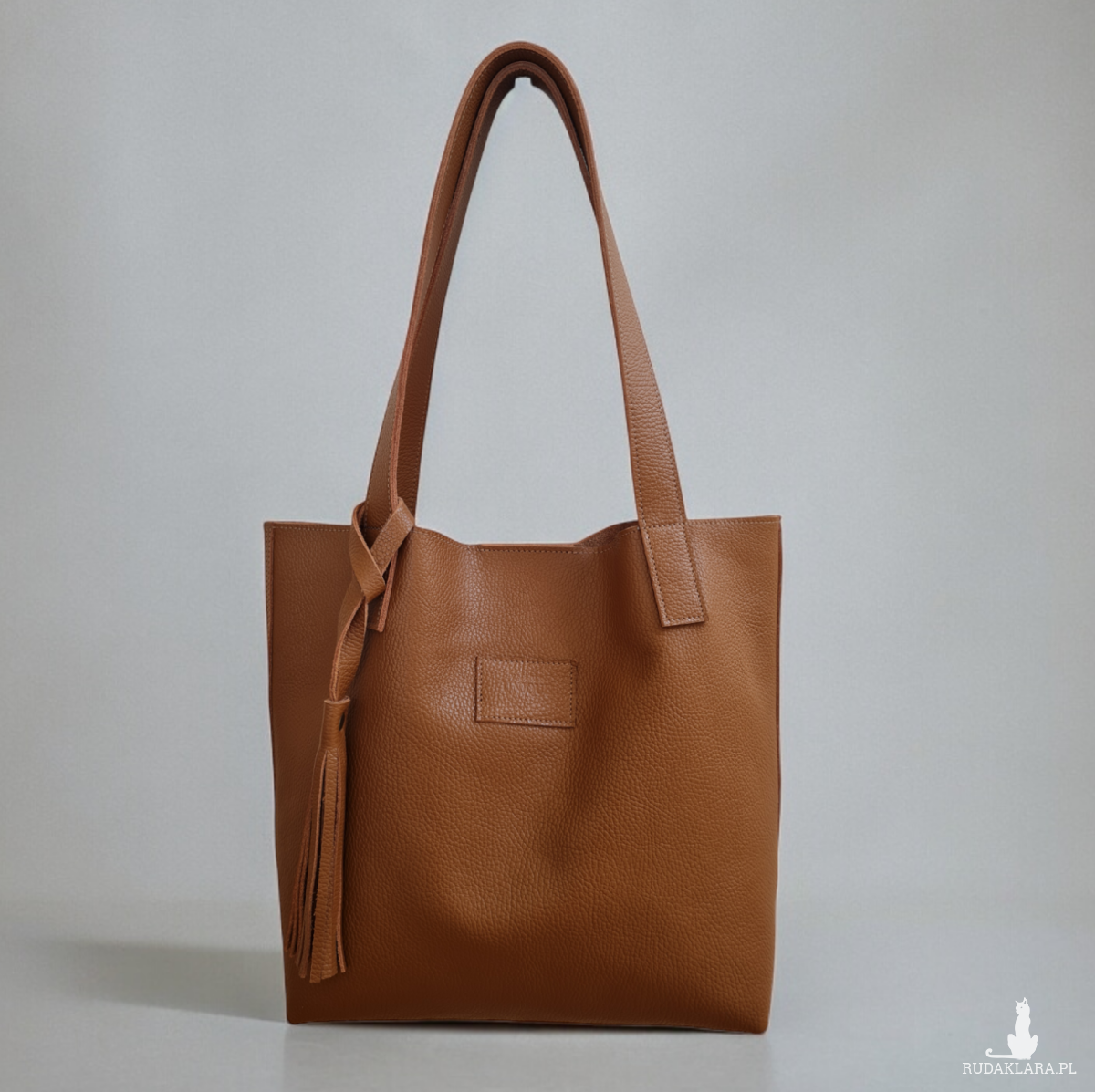 Skórzana Shopperka. Torebka damska na ramię Shopper Bag, Toffie