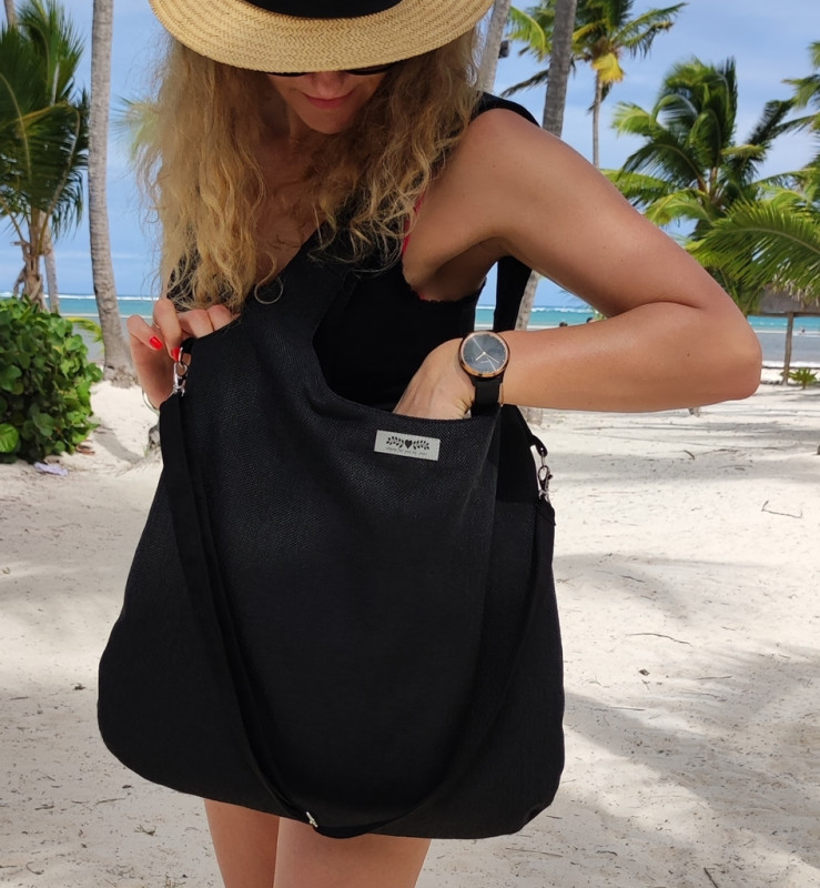 Czarna duża torebka XXL, boho, torebka na ramię