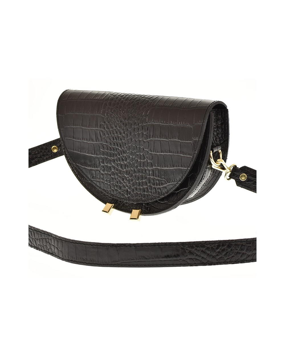 Półokrągła designerska torebka skórzana krokodyl czarna | Torebki damskie skórzane