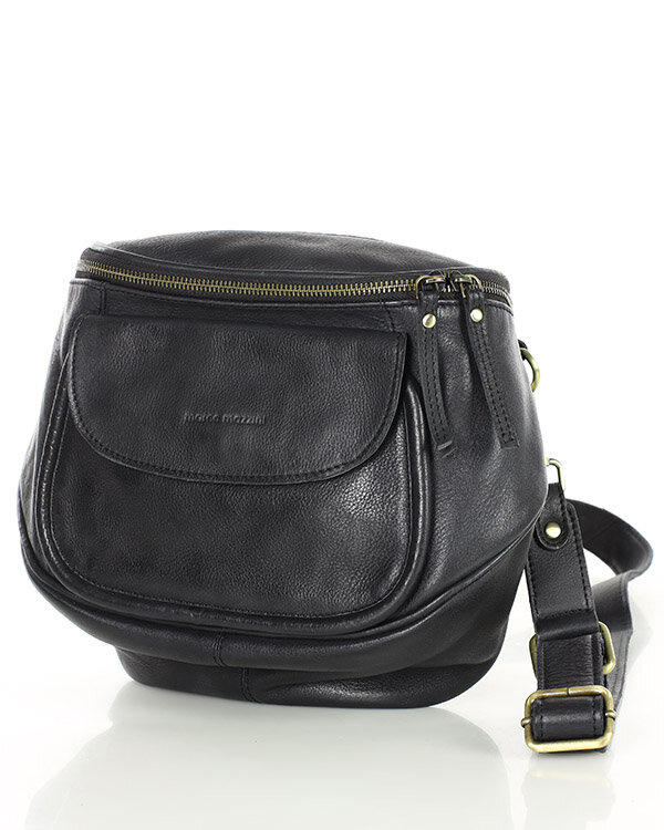 Torebka na szerokim pasku półokrągła skórzana listonoszka MARCO MAZZINI czarna czarny | sklep Verostilo