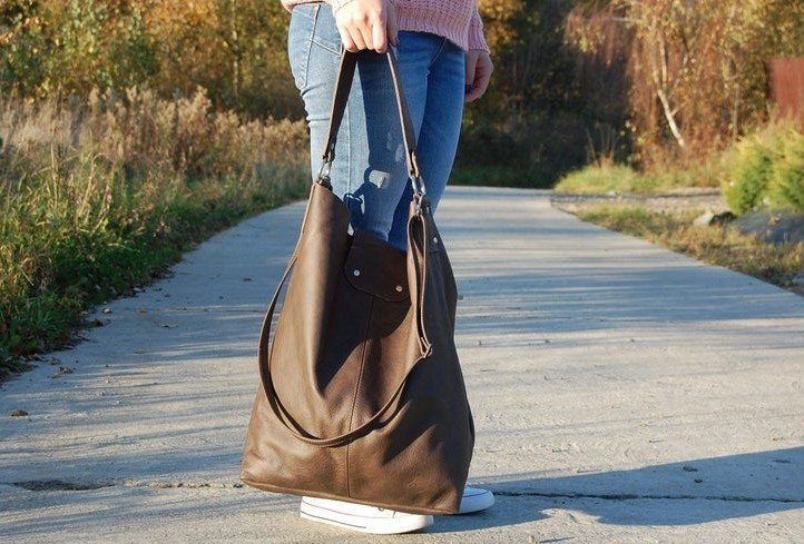 Duża damska torba worek skóra naturalna