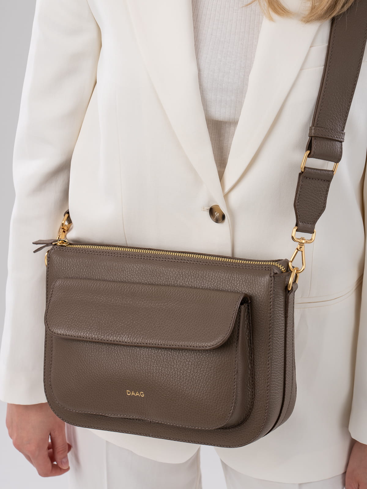 MARLOTTE taupe groszek skórzana duża torebka damska listonoszka torba na ramię