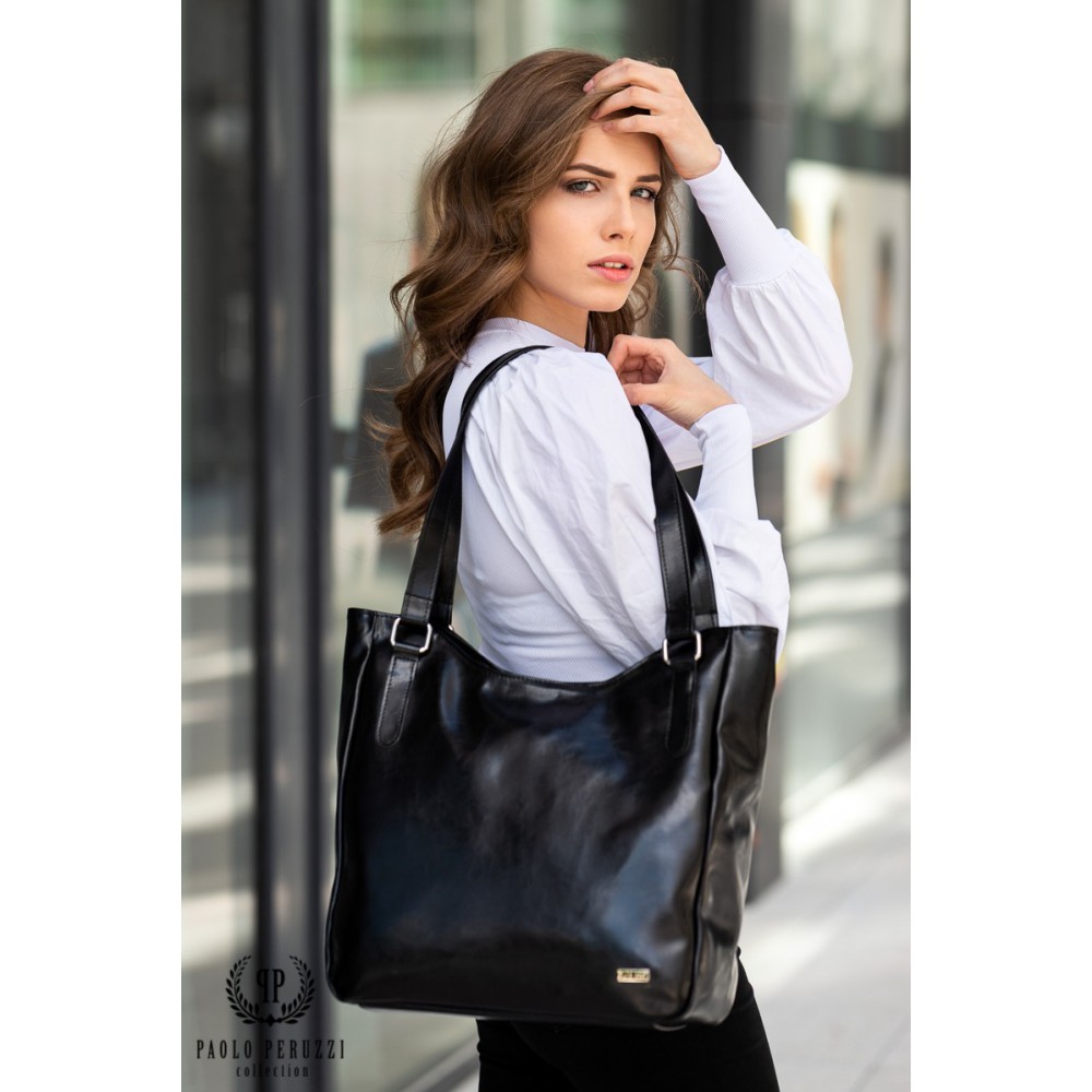 Torba damska skórzana duża czarna shopper bag Z 09 BL