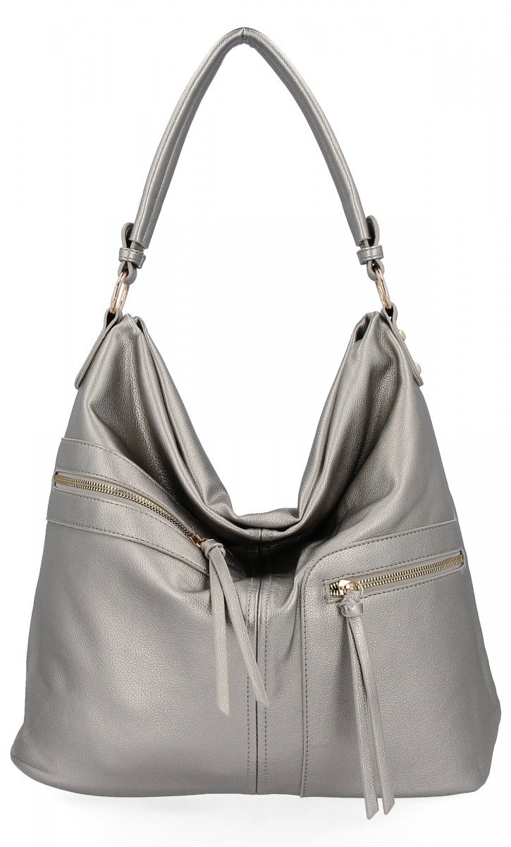 Duże Torebki Damskie XXL firmy Herisson Ciemno Srebrna