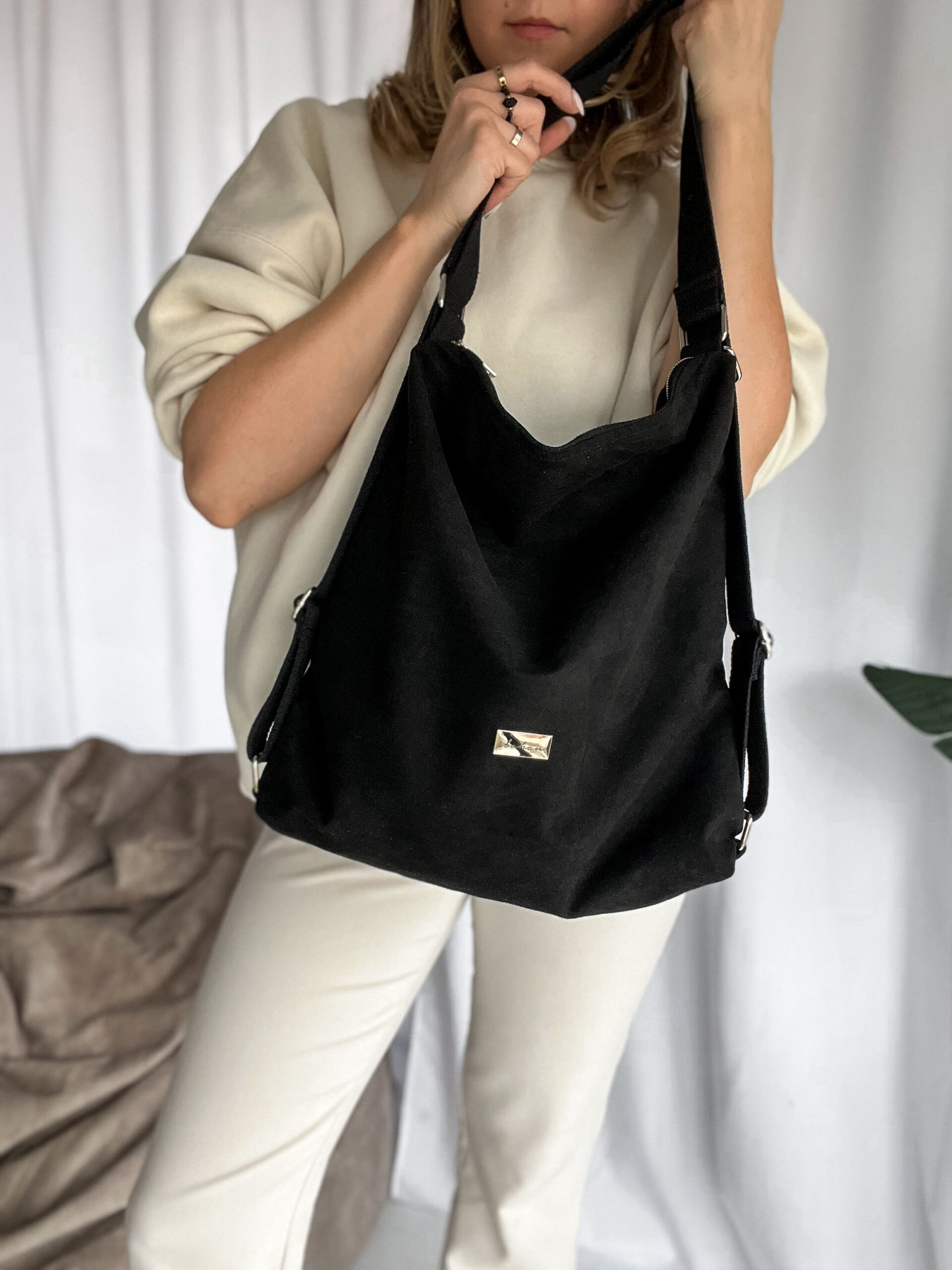 Torebko plecak (rozmiar S) NUBUK CZARNY / złote okucia –