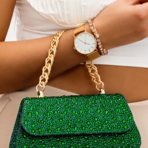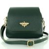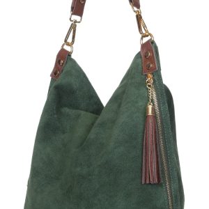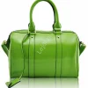 Zielona jasna duża torba na ramię z ozdobnymi przeszyciami i odpinanym breloczkiem