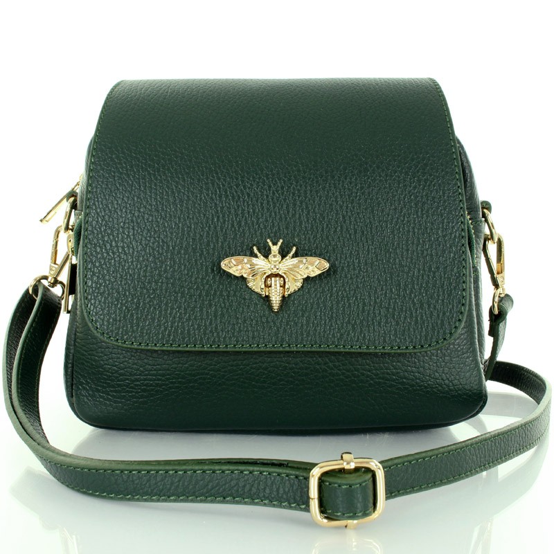 Zielona butelkowa skórzana włoska torebka listonoszka Vera Pelle