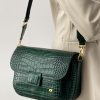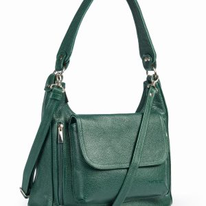 VERA PELLE torebka damska skórzana listonoszka z paskiem na ramię V482 zielona
